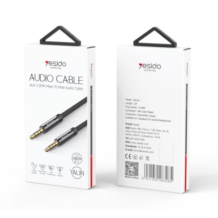 YAU14 1Meter 3.5mm to 3.5mm Audio CableYAU14 1m Nylon Braided 3.5Mm To 3.5Mm Jack plug Speakers Music Connection Aux Auxiliar Audio Cable.Support Mobile Phone/Tablet/MP4/MP3 to Audio Devices.Features3.5mm to 3.5mm Audio Cable.Aux Auxiliar Audio Cable.1 Meter Audio Adapter.YAU14 1Meter 3.5mm to 3.5mm Audio CableParameterBrand:YesidoItem Name:1 Meter 3.5mm To 3.5mm Audio CableMode:YAU14Apply to:mobile phone / tablet / laptop / othersMaterial:Aluminum alloy +Cotton Covered Silver Plating CoreFeatures:Support music displayOutput:not support powerG.W:38GYAU14 1Meter 3.5mm to 3.5mm Audio CableVideoProduct Using Video1. Connect the cable to a music source, like mobile phone/tablet/laptop/computer/MP4/MP32. Connect another type to display devices, like speaker, headset, and so on.Product Composition1Meter 3.5mm to 3.5mm Audio Cable.YAU14 1Meter 3.5mm to 3.5mm Audio CableDetailsFAQ1. what is the delivery time of theYAU14 1Meter 3.5mm to 3.5mm Audio Cable?Usually, the delivery time will be within 5-7 days.2. What you can do in OEM?We can help to design the customer’s logo on the products, and help to design the product packaging according to our standard3. How long is your warranty time?from the selling date, last for 1 year.