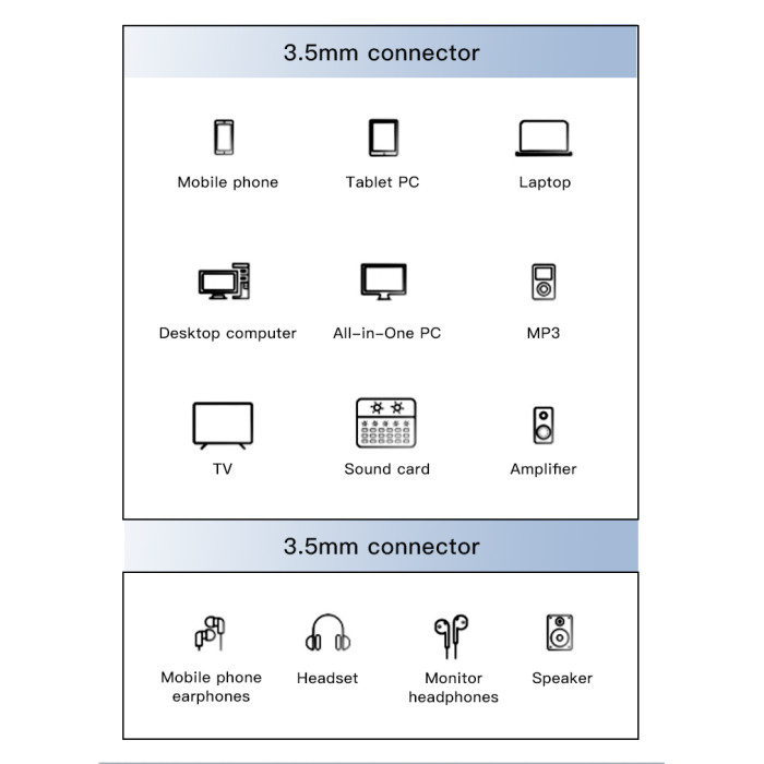 Support Mobile Phone/Tablet/MP4/MP3 to Audio Devices.