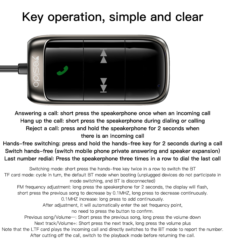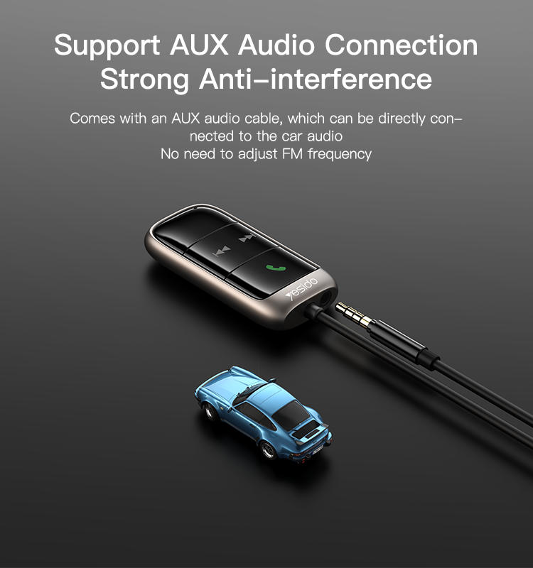 YAU32 Bluetooth Transmitter Audio CableYAU32 Good Heat Dissipation Key Operation, Simple And Clear High End Sonido Audio Cable.Support Mobile Phone/Tablet/MP4/MP3 to Audio Devices.FeaturesBluetooth transmit to FM.USB power sorce.connection.Good in connection.YAU32 Bluetooth Transmitter Audio CableParameterBrand:YesidoItem Name:Bluetooth Transmitter Audio CableMode:YAU32Apply to:mobile phone / tablet / laptop / othersMaterial:Aluminum Alloy+ PVC wireFeatures:Support music displayOutput:not support powerG.W:93GYAU32 Bluetooth Transmitter Audio CableVideoProduct Using Video1. Connect the cable to a music source, like mobile phone/tablet/laptop/computer/MP4/MP32. Connect another type to display devices, like speaker, headset, and so on.Product CompositionBluetooth  Transmitter Audio Cable.YAU32 Bluetooth Transmitter Audio CableDetailsFAQ1. what is the delivery time of theYAU32 Bluetooth Transmitter Audio Cable?Usually, the delivery time will be within 5-7 days.2. What you can do in OEM?We can help to design the customer’s logo on the products, and help to design the product packaging according to our standard3. How long is your warranty time?from the selling date, last for 1 year.