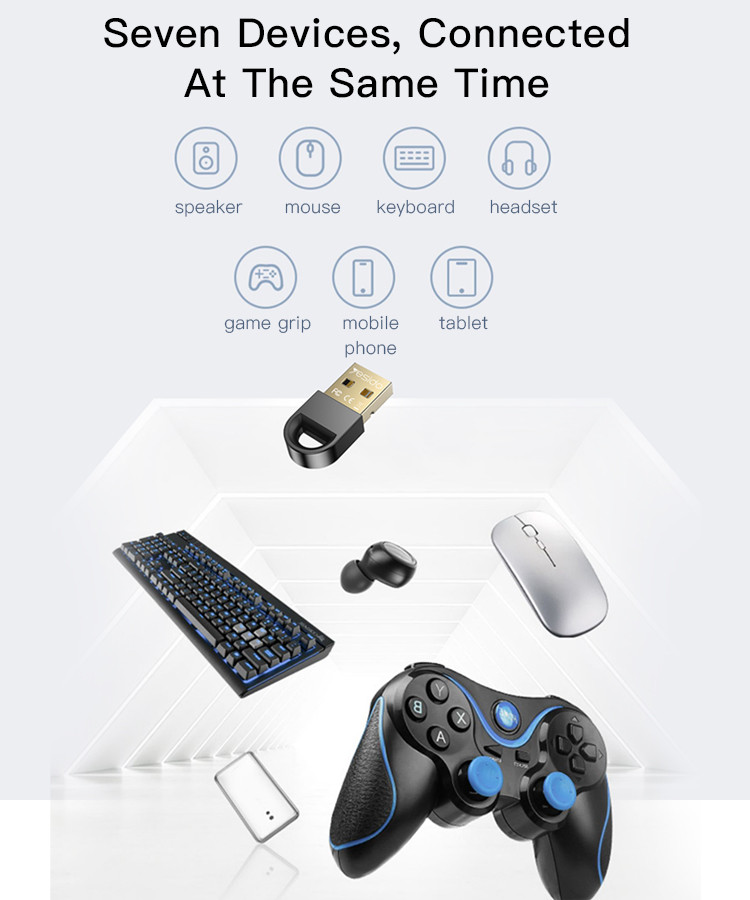 YAU34 Mini USB Bluetooth Adapter ReceiverYAU34 Mini USB Bluetooth Adapter Receiver Wireless Mini USB Bluetooth 5.1 Receiver For Computer.Support Mobile Phone/Tablet/MP4/MP3 to Audio Devices.Features2.4Ghz.USB Pin.Bluetooth 5.1.Can for Data transmit.Mini USB Bluetooth Adapter Receiver.YAU34 Mini USB Bluetooth Adapter ReceiverParameterBrand:YesidoItem Name:Mini USB Bluetooth Adapter ReceiverMode:YAU34Apply to:tablet / laptop / computer / othersMaterial:PC + Aluminum AlloyFeatures:Support music displayOutput:not support powerG.W:20GYAU34 Mini USB Bluetooth Adapter ReceiverVideoProduct Using Video1. Connect the adapter receiver to a laptop/computer.2. Connect another type to display devices, like speaker, headset, and so on.Product CompositionMini USB Bluetooth Adapter ReceiverYAU34 Mini USB Bluetooth Adapter ReceiverDetailsFAQ1. what is the delivery time of theYAU34 Mini USB Bluetooth Adapter Receiver?Usually, the delivery time will be within 5-7 days.2. What you can do in OEM?We can help to design the customer’s logo on the products, and help to design the product packaging according to our standard3. How long is your warranty time?from the selling date, last for 1 year.
