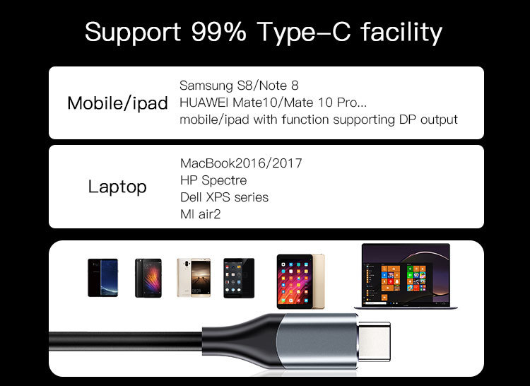 Short description: HM01 Type-C To HDMI Video Cable1.8 mType-Cto HDMI Video, can support max 4k 60Hz or below resoluction.HM01 Professional 4K 60HZ Type-C to HDMI Audio Video & PD Fast charging Audio Cable.Support Mobile Phone/Tablet, directly connect to video devices.FeaturesSupport High Clear Max4K video.Type-C PD fast charging.Type-C to HDMI Video Cable.Video And Audio together.USB charging.HM01 Type-C To HDMI Video CableParameterBrand:YesidoItem Name:Type-C to HDMI Video CableMode:HM01Apply to:mobile phone / tablet / laptop / othersMaterial:ABS + Aluminum Alloy + TPEFeatures:Support Video displayOutput:not support powerG.W:93GHM01 Type-C To HDMI Video CableVideoProduct Using Video1. Connect the cable to a video source, like mobile phone/tablet2. Connect another type to display devices, like mornitor / television/projector3. Scan the code on the screen and follow the usingProduct CompositionUSB chargingType-C to HDMIHM01 Type-C To HDMI Video CableDetailsFAQ1. what is the delivery time of theHM03 Type-C To HDMI Video Cable?Usually, the delivery time will be within 5-7 days.2. What you can do in OEM?We can help to design the customer’s logo on the products, and help to design the product packaging according to our standard3. How long is your warranty time?from the selling date, last for 1 year.