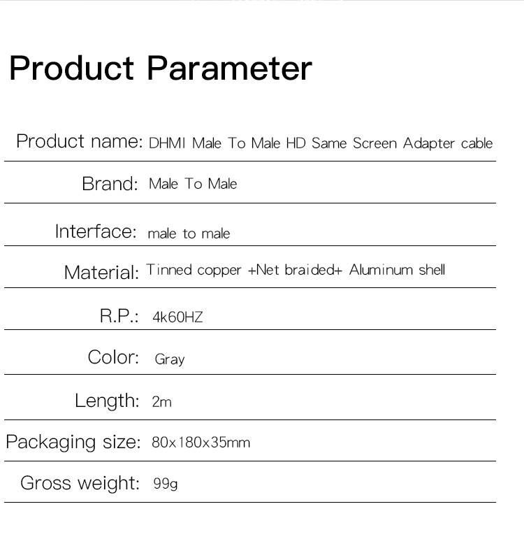 Title: HM08 2 meters 4K 60Hz High 3D Effect HDMI to HDMI Nylon Cable Adapter