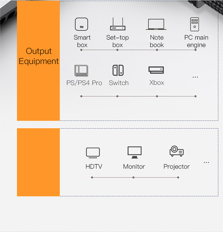 HM08 HDMI to HDMI Video Cable2 meter HDMI to HDMI Video, can support max 4K 60Hz or below resoluction.Support Mobile Phone/Tablet, directly connect to video devices.FeaturesSupport High Clear Max4K video.Can direct connect the mobile phone to the mornitor.Video And Audio together.HM08 HDMI to HDMI Video CableParameterBrand:YesidoItem Name:HDMI to HDMI Video CableMode:HM08Apply to:mobile phone / tablet / laptop / othersMaterial:PVC+ Aluminum Alloy+NylonFeatures:Support Video displayOutput:not support powerG.W:120GHM08 HDMI to HDMI Video CableVideoProduct Using Video1. Connect the cable to a video source, like mobile phone/tablet2. Connect another type to display devices, like mornitor / television/projector3. Scan the code on the screen and follow the usingProduct CompositionHDMI to HDMI (PVC)4K/60Hz High 3D Effect2 meters18Gbps Fluid VideoHM08 HDMI to HDMI Video CableDetailsFAQ1. what is the delivery time of theHM08 HDMI to HDMI Video Cable?Usually, the delivery time will be within 5-7 days.2. What you can do in OEMWe can help to design the customer’s logo on the products, and help to design the product packaging according to our standard3. How long is your warranty time?from the selling date, last for 1 year.