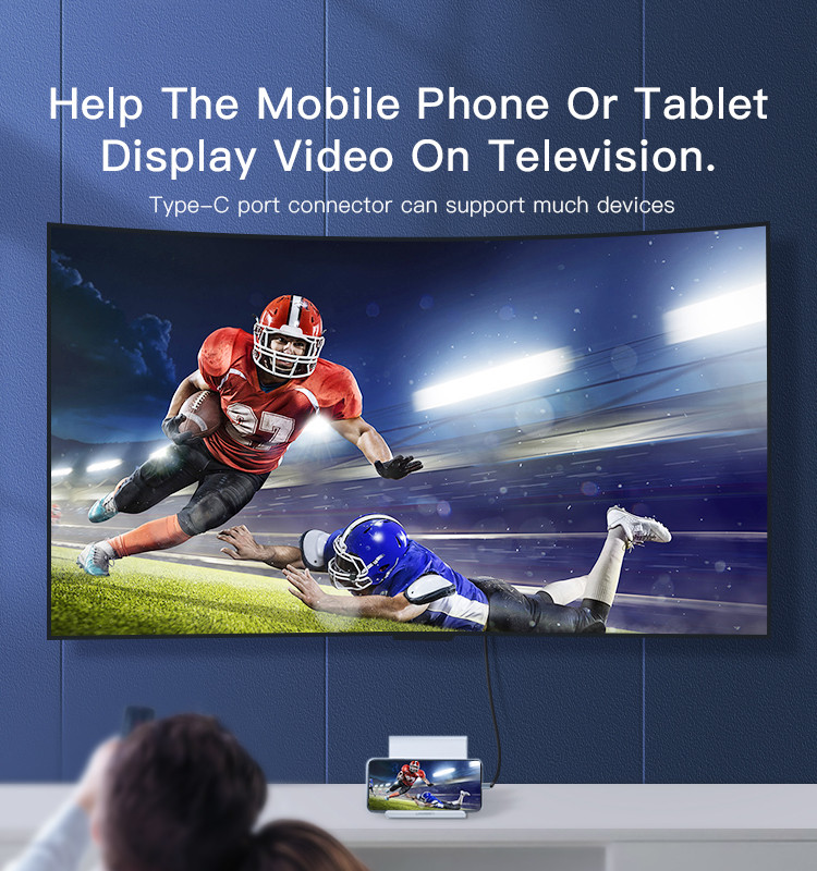 Short description: HM10 Type-C to HDMI Video Cable2 meter Type-C to HDMI Video, can support max 4K 60Hz or below resoluction.Support Mobile Phone/Tablet, directly connect to video devices.FeaturesSupport High Clear Max4K video.Can direct connect the mobile phone to the mornitor.Video And Audio together.HM10 Type-C to HDMI Video CableParameterBrand:YesidoItem Name:Type-C to HDMI Video CableMode:HM10Apply to:mobile phone / tablet / laptop / othersMaterial:Nylon Braided cable + Aluminum AlloyFeatures:Support Video displayOutput:not support powerG.W:100GHM10 Type-C to HDMI Video CableVideoProduct Using Video1. Connect the cable to a video source, like mobile phone/tablet2. Connect another type to display devices, like mornitor / television/projector3. Scan the code on the screen and follow the usingProduct CompositionHM10 Type-C to HDMI Video CableDetailsFAQ1. what is the delivery time of theHM10 Type-C to HDMI Video Cable?Usually, the delivery time will be within 5-7 days.2. What you can do in OEMWe can help to design the customer’s logo on the products, and help to design the product packaging according to our standard3. How long is your warranty time?from the selling date, last for 1 year.