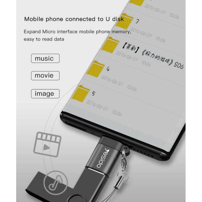 GS07 Micro to USB-A OTG AdapterGS07 Mini Function For Mobile Phone Convertor Micro Card Reader OTG Adapter.FeaturesMicro to USB-A.USB for mouse/ keyboard/ camera/U-Disk/mobile phone.OTG Adapter.GS07 Micro to USB-A OTG AdapterParameterBrand:YesidoItem Name:GS07 Microto USBOTG AdapterMode:GS07Apply to:mobile phone / tablet / laptop / othersMaterial:PC + Aluminum AlloyFeatures:Support Data and chargingOutput:According to devicesG.W:22GGS07 Micro to USB-A OTG AdapterVideoProduct Using Video1. Insert the adapter to mobile phone/tablet.2. Connect the Micro cable.GS07 Micro to USB-A OTG AdapterDetailsFAQ1. what is the delivery time of the Yesido GS07 Micro to USB-A OTG Adapter?Usually, the delivery time will be within 5-7 days.2. What you can do in OEM?We can help to design the customer’s logo on the products, and help to design the product packaging according to our standard3. How long is your warranty time?from the selling date, last for 1 year.