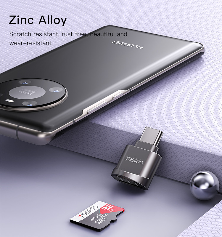 Short description: GS19 Type-C to USB OTG Writer Card ReaderMini OTG Adapter forType-C to USB OTG Writer Card Reader.Support USB Cable for using on TF rfid card devices.SupportEmergency need On usingFeaturesSupport Fast Data transfer.Support charging. .GS19 Type-C to USB OTG Writer Card ReaderParameterBrand:YesidoItem Name:GS19 Type-C to USB OTG Writer Card ReaderMode:GS19Apply to:mobile phone / tablet / laptop / othersMaterial:Aluminum Alloy + PCFeatures:Support Data and chargingOutput:According to devicesG.W:27GGS19 Type-C to USB OTG Writer Card ReaderVideoProduct Using Video1. Insert the adapterto mobile phone/tablet2. Connect the lightning cableProduct CompositionOTG Card ReaderType-C to Micro SD Card SlotGS19 Type-C to USB OTG Writer Card ReaderDetailsFAQ1. what is the delivery time of theGS19 Type-C to USB OTG Writer Card Reader?Usually, the delivery time will be within 5-7 days.2. What you can do in OEM?We can help to design the customer’s logo on the products, and help to design the product packaging according to our standard3. How long is your warranty time?from the selling date, last for 1 year.