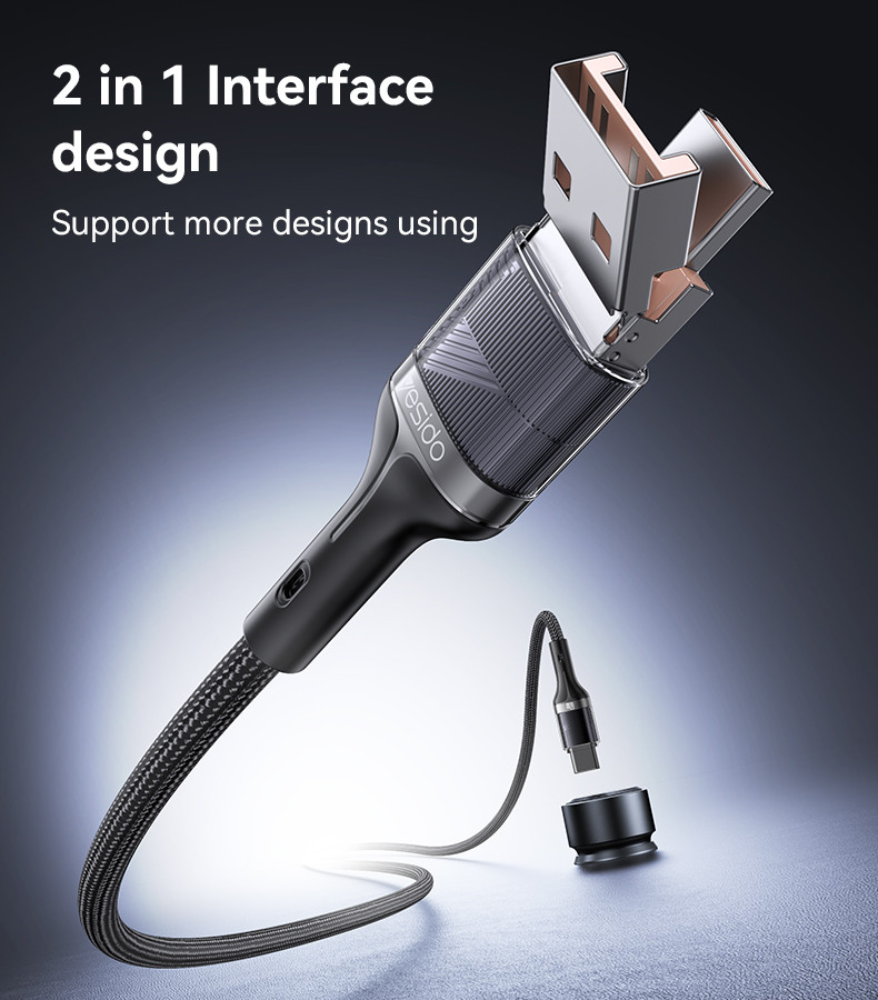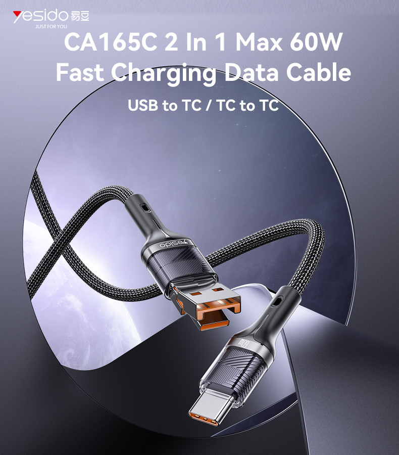 CA165C Yesido 2 in 1 60W Fast Charging High-density Braided Body USB/Type-C To Type-C Data Cable.