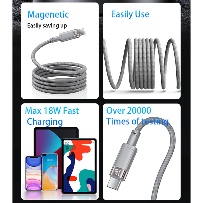 Title: CA173 USB To Type-C 1 Meters Length Max 18W Fast Charging Magnetic Data Cable