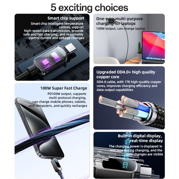 Title: CA179 1.2 Meters Type-C To Type-C PD 100W Super Fast Charging Built-in Digital Display Data Cable