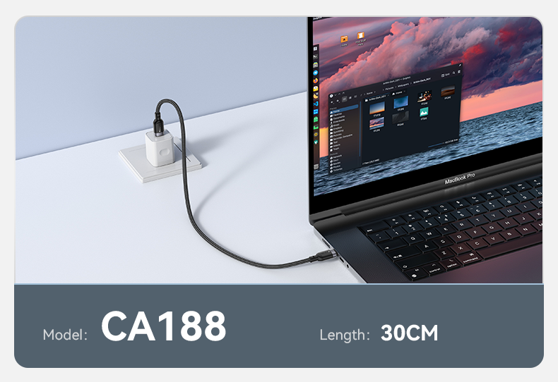CA188 30CM Type-C To Type-C 60W Fast Charging Data Cable Details