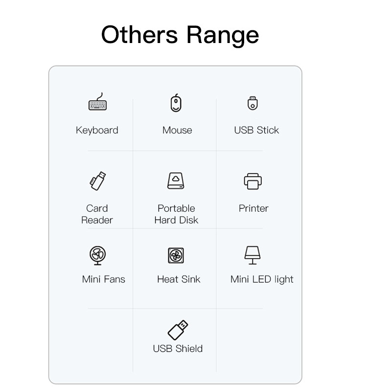2. Connect the USB Flash disk, external devices or charging cable to USB hub