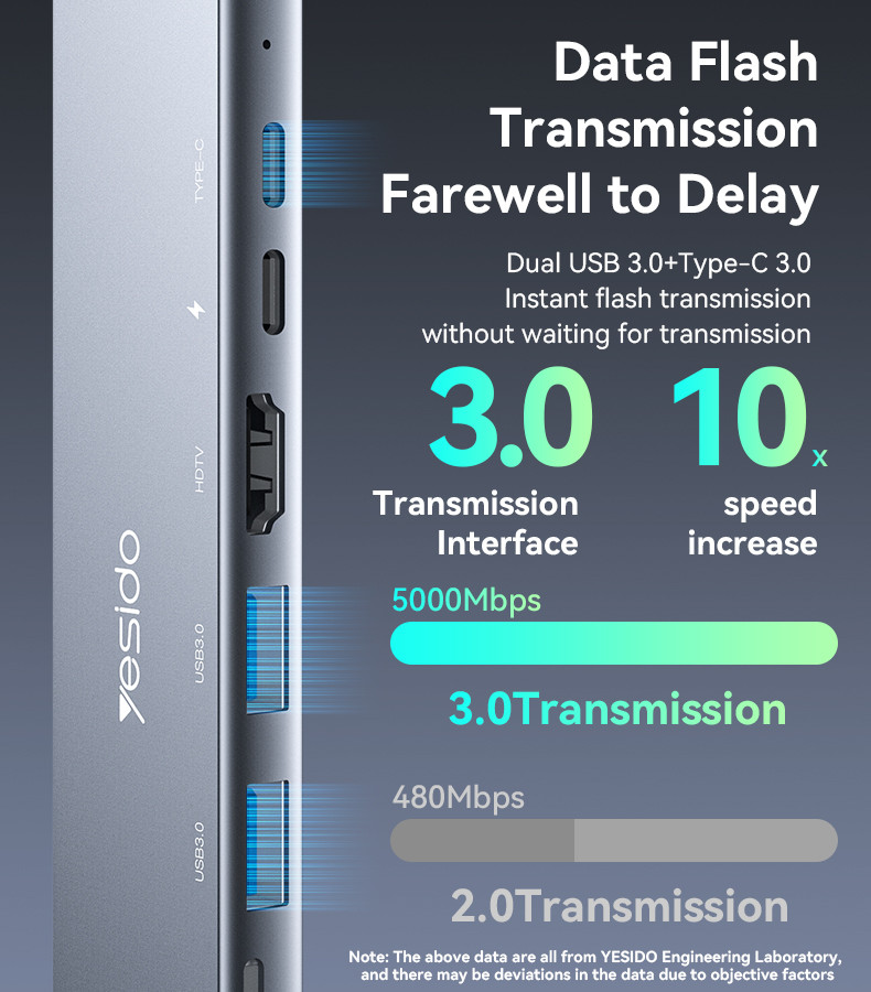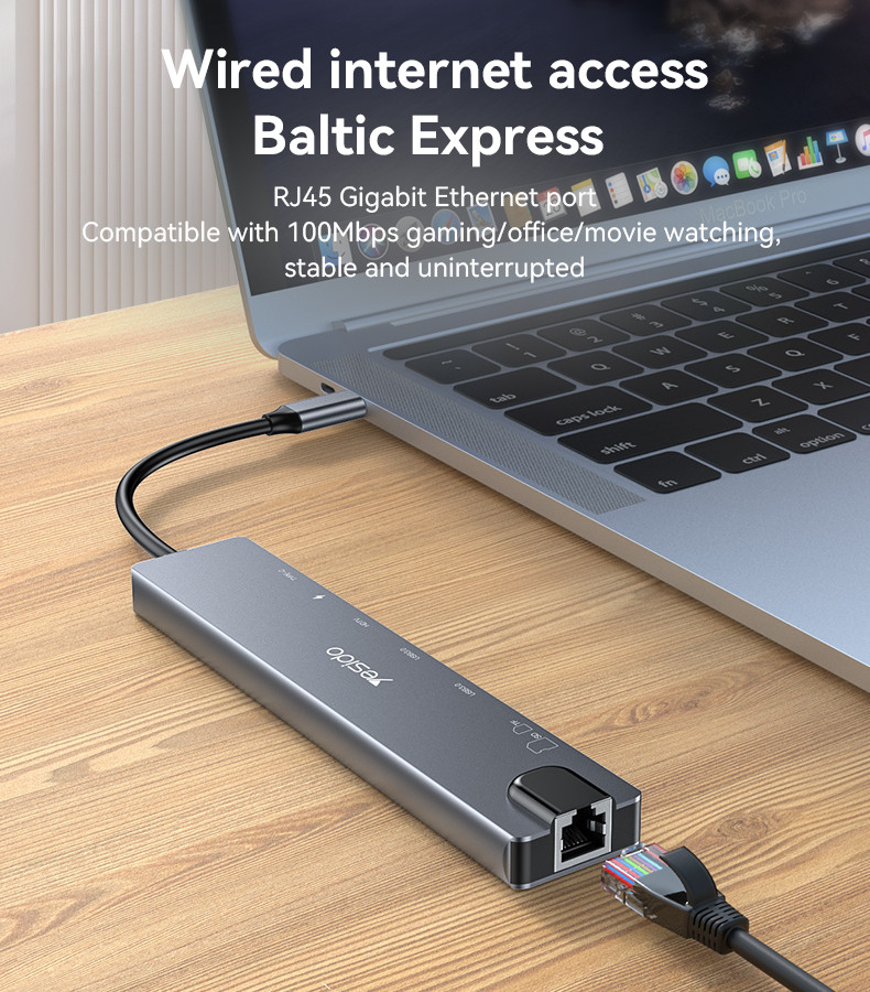 HB27 Eight in One USB Hub2*USB3.0 + 1*TF + 2*Type C + 1*HDMI + 1*SD + RJ45.Support 100W fast charging to laptop/tablet/mobile phone.Supportdevices to read data.FeaturesChips: GL3510+Ag9311+GL857L+Aws3410+Rt8153B.RC:MURATA.TC Plug = USB 3.1.USB 1=USB 2 = USB 3.0.TC = USB 3.0.TC port = PD 100W.HDMI = 4K 30Hz.RJ45 = 1000M.HB27 Eight in One USB Hub ParameterBrand:YesidoItem Name:Eight in One Expansion DockMode:HB27Apply to:mobile phone / tablet / laptop / othersMaterial:Aluminum AlloyFeatures:Support Data and chargingOutput:According to devices, Max 100WG.W:103GHB27 Eight in One USB Hub ParameterProduct Composition1. Insert the Hub to mobile phone/tablet / laptop2. Connect the USB Flash disk, external devices or charging cable to USB hubHB27 Eight in One USB Hub DetailsFAQ1. what is the delivery time of theHB27 Eight in One USB Hub?Usually, the delivery time will be within 5-7 days.2. What you can do in OEM?We can help to design the customer’s logo on the products, and help to design the product packaging according to our standard3. How long is your warranty time?from the selling date, last for 1 year.