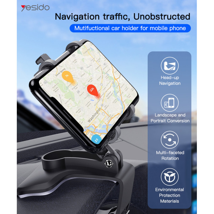 Yesido C101 Rearview Mirror 360 Rotating Hand Abs Flexible Stand Clamp Dashboard Phone Holder For Car.