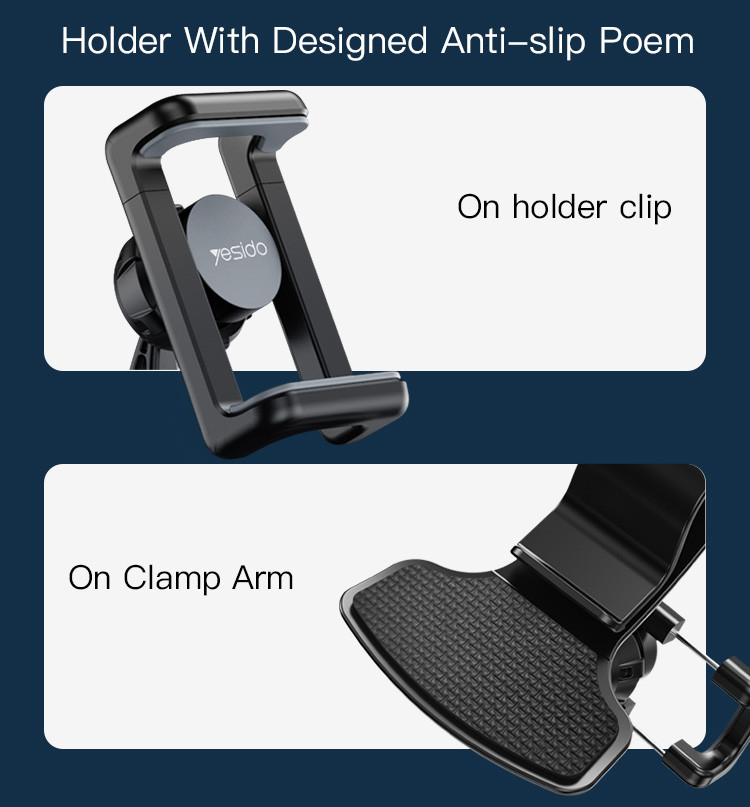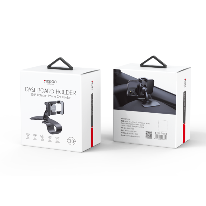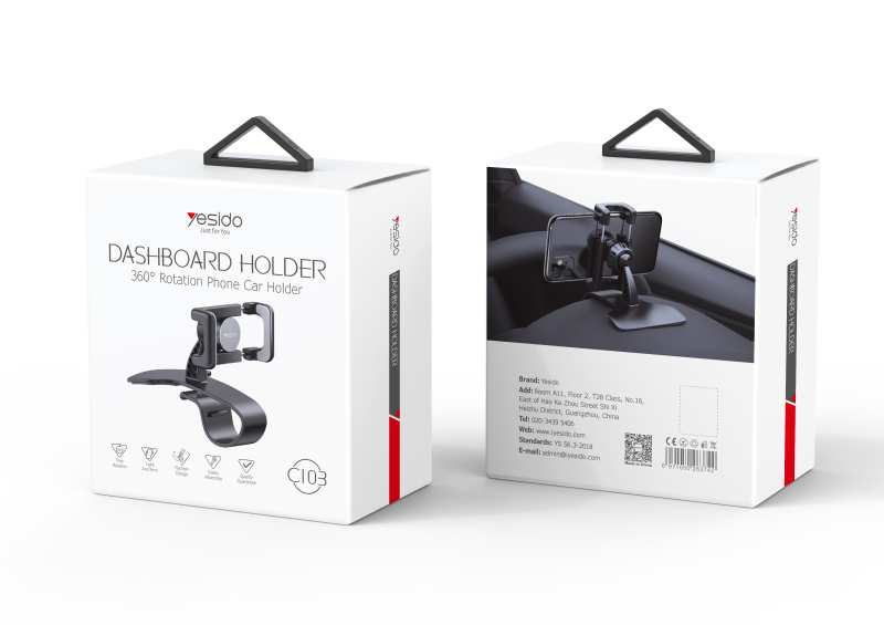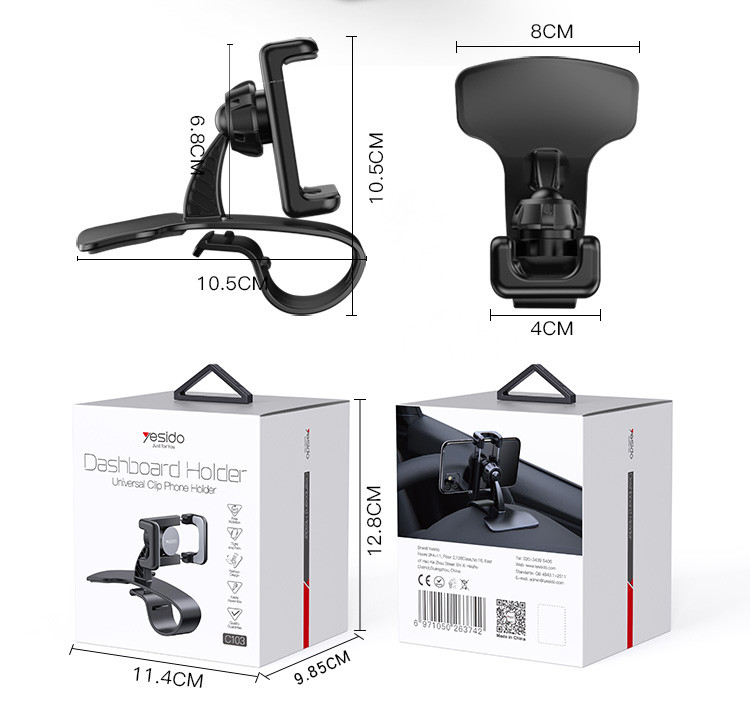 C103 Dashboard Spring Clip Phone HolderYesido C103 Navigation Silicone Clip Hone Accessories Phone Holder | Dashboard Car Mobile Phone Mount.HPS offer 0.5J/1J/2J/3.5J/4.8J(AC/AC&DC/SOLAR).FeaturesSpring Clip Holder.using on dashboard.Silicone Clip Hone Accessories Phone Holder.C103 Dashboard Spring Clip Phone HolderParameterBrand:YesidoFixing method:Spring Clip Phone HolderMode:C103Apply to:DashboardMaterial:ABS + Aluminum AlloyApplicable items:Mobile PhoneOutput:G.W:117GC103 Dashboard Spring Clip Phone HolderVideoProduct Installation Video1.Assemble the holder and the base.2.Assemble the holder on to the dashboard.3. Put the mobile phone on and start using.Product CompositionSpring Clip Phone Holder.C103 Dashboard Spring Clip Phone HolderDetailsFAQ1. what is the delivery time of theC103 Dashboard Spring Clip Phone Holder?Usually, the delivery time will be within 5-7 days.2. What you can do in OEM ?We can help to design the customer’s logo on the products, and help to design the product packaging according to our standard3. How long is your warranty time?from the selling date, last for 1 year.