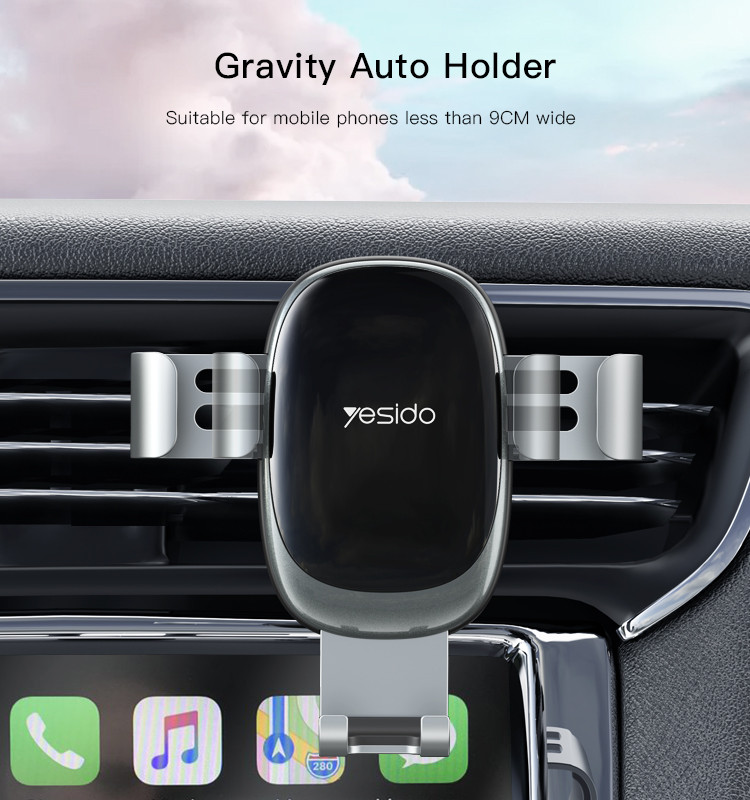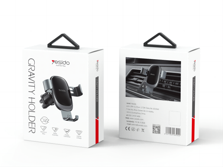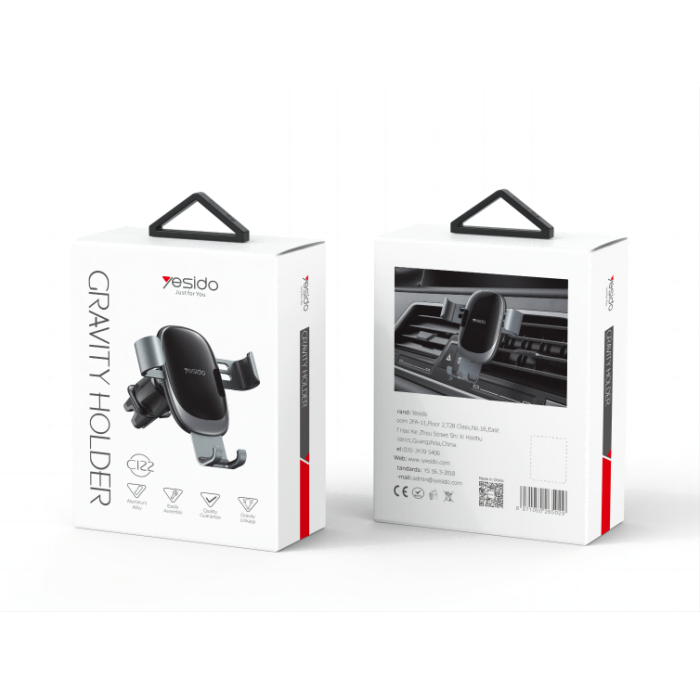 C122 Gravity Sensor Phone HolderYesido C122 Factory Custom Vehicle Mobile Phone Holder | Air Vent Clip Gravity Car Cell Phone Holder.HPS offer 0.5J/1J/2J/3.5J/4.8J(AC/AC&DC/SOLAR).FeaturesAluminum Alloy + ABS.Gravity Sensor Phone Holder.for Air vent using.C122 Gravity Sensor Phone HolderParameterBrand:YesidoFixing method:Gravity Sensor Phone HolderMode:C122Apply to:Air VentMaterial:ABS+AluminiumApplicable items:Mobile PhoneOutput:G.W:109GC122 Gravity Sensor Phone HolderVideoProduct Installation Video1.Assemble the holder and the base.2.Assemble the holder on to theAir Vent.3. put the mobile phone on and start using.C122 Gravity Sensor Phone HolderDetailsFAQ1. what is the delivery time of theC122 Gravity Sensor Phone Holder?Usually, the delivery time will be within 5-7 days.2. What you can do in OEM ?We can help to design the customer’s logo on the products, and help to design the product packaging according to our standard3. How long is your warranty time?from the selling date, last for 1 year.