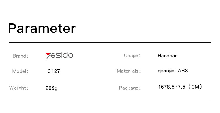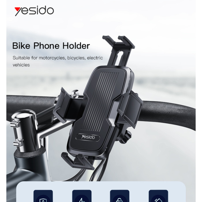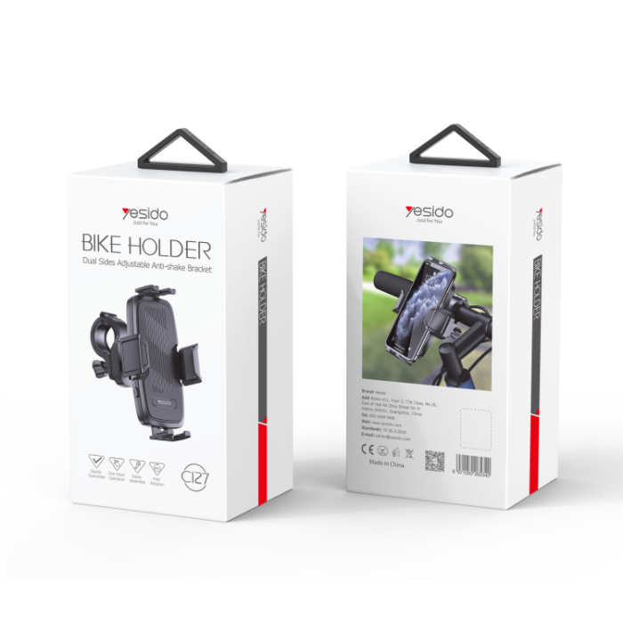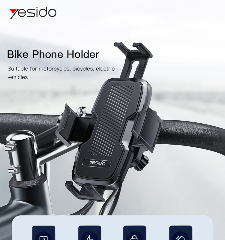 C127 Bicycle Phone HolderYesido C127 360 Rack Rubber Car Cycle Silicone Bicycle Motor Mobile Cell Smart Phone Holder For Bike.HPS offer 0.5J/1J/2J/3.5J/4.8J(AC/AC&DC/SOLAR).FeaturesABS Material.Releasing swich for bicycle or motocycle.4 sides clip holding.C127 Bicycle Phone HolderParameterBrand:YesidoFixing method:Bicycle Phone HolderMode:C127Apply to:HandbarMaterial:sponge+ABSApplicable items:Mobile PhoneOutput:G.W:197GC127 Bicycle Phone HolderVideoProduct Installation Video1.Assemble the holder and the base.2.Assemble the holder on to theAir Vent.3. put the mobile phone on and start using.Product CompositionBicycle Phone HolderC127 Bicycle Phone HolderDetailsFAQ1. what is the delivery time of theC127 Bicycle Phone Holder?Usually, the delivery time will be within 5-7 days.2. What you can do in OEM ?We can help to design the customer’s logo on the products, and help to design the product packaging according to our standard3. How long is your warranty time?from the selling date, last for 1 year.