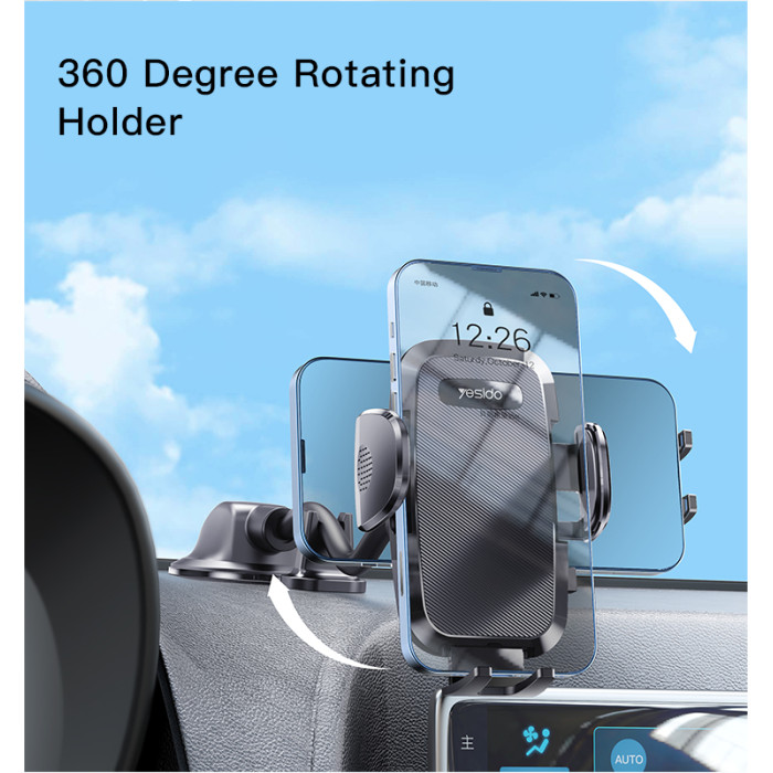 Yesido C140 360 Degree Rotating Arm Dashboard Truck Mobile Cellphone Smartphone Cell Smart Phone Holder Mount Bracket Stand Support For Car.