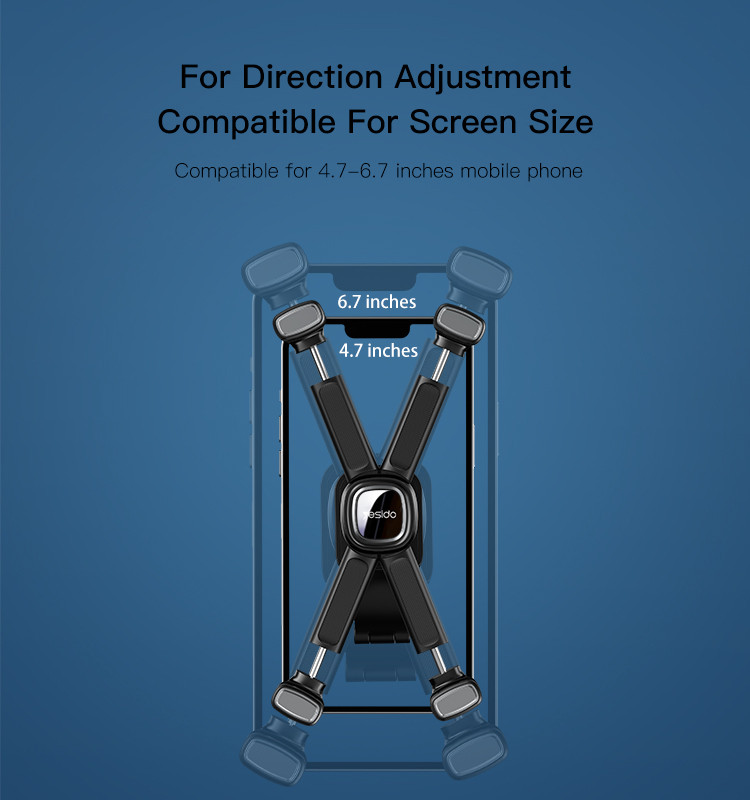 Short description: C191 Bicycle/Motocycle phone holderYesido C191 Adjustable Phone Holder Stand Universal Motorcycle Bicycle Bike Handlebar Bracket Mount Clip GPS Phone Holder.HPS offer 0.5J/1J/2J/3.5J/4.8J(AC/AC&DC/SOLAR).FeaturesABS+Metal+PC.4 Corner Holding mobile.for bicycle/motocycle.C191 Bicycle/Motocycle phone holderParameterBrand:YesidoFixing method:ClipMode:C191Apply to:Bicycle/Motocycle handlebarsMaterial:ABSApplicable items:All kinds of mobile phoneOutput:G.W:155GC191 Bicycle/Motocycle phone holderVideoProduct Installation Video1. Assemble the holder.2. Press the holder on to Bicycle/Motocycle handlebars.3.open the clip4. put the mobile phone on and start usingProduct CompositionHolder HeadClipC191 Bicycle/Motocycle phone holderDetailsFAQ1. what is the delivery time of theC191 Bicycle/Motocycle phone holder?Usually, the delivery time will be within 5-7 days.2. What you can do in OEMWe can help to design the customer’s logo on the products, and help to design the product packaging according to our standard3. How long is your warranty time?from the selling date, last for 1 year.