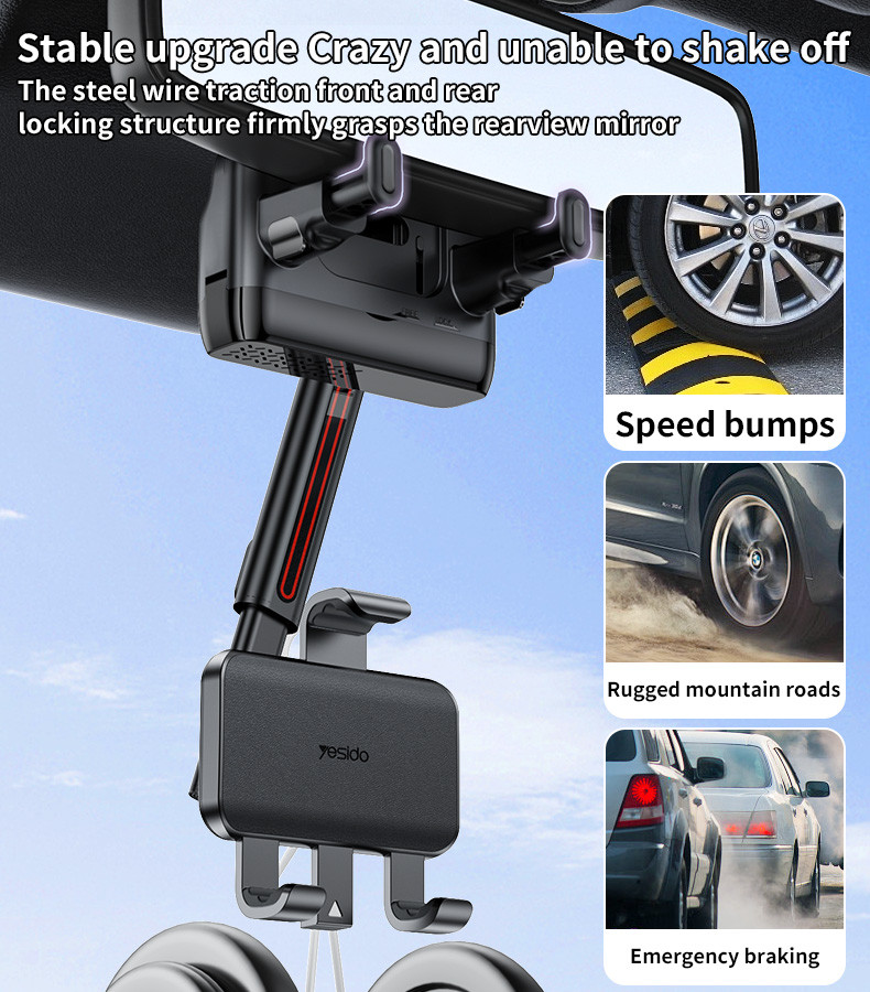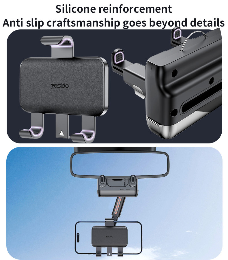 C265 Yesido 360°Adjustable Rotation Length Adjustable Rearview Mirror Car Phone Holder For Various Scenarios.
