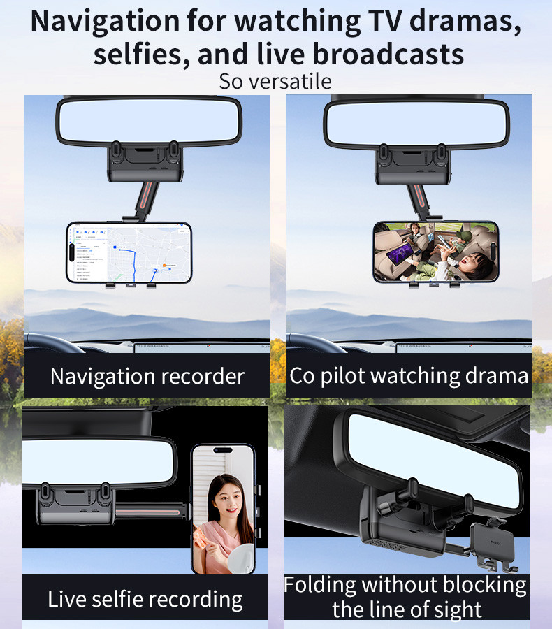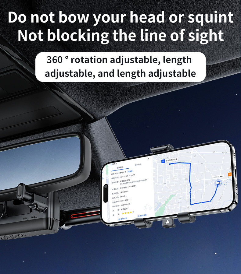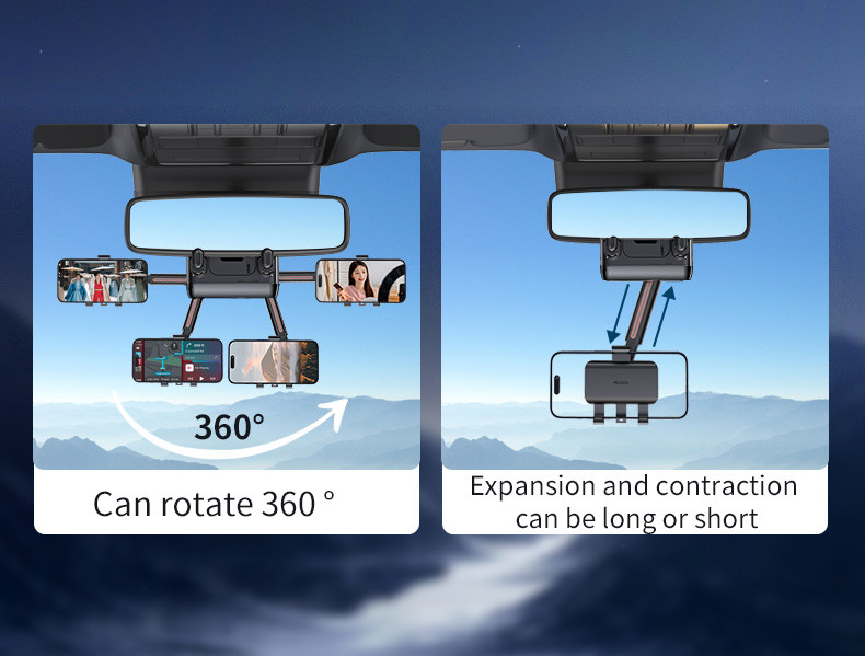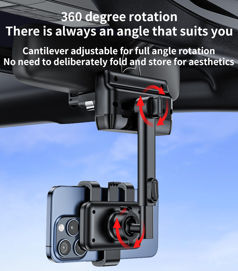 Title: C265 360°Adjustable Rotation Length Adjustable Rearview Mirror Car Phone Holder
