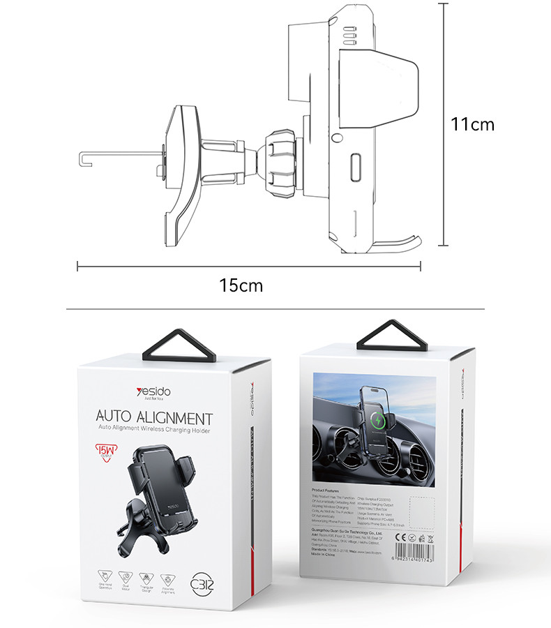 Source URL: https://www.iyesido.com/pid18450818/C312-Yesido-Motorized-Clamping-Auto-Alignment-15W-Wireless-Charging-Car-Air-Vent-Phone-Holder.htm