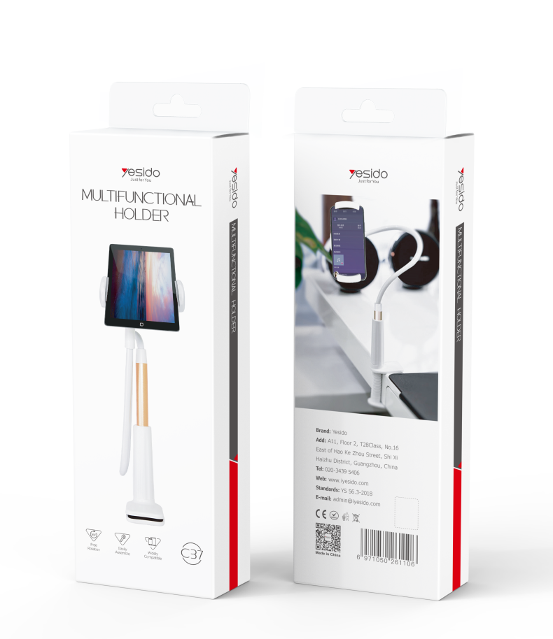 C37 Plastic Spring Clip Phone HolderYesido C37 360 Degree Rotation Long Arm Flexible Desktop Phone Holder Foldable Desk Phone Tablet Holder.HPS offer 0.5J/1J/2J/3.5J/4.8J(AC/AC&DC/SOLAR).FeaturesPlastic spring clip holder.flexible clamp arm.Spring clip base.Home using.C37 Plastic Spring Clip Phone HolderParameterBrand:YesidoFixing method:Plastic Spring ClipPhone HolderMode:C37Apply to:HomeMaterial:ABS + PlasticApplicable items:Mobile PhoneOutput:G.W:200GC37 Plastic Spring Clip Phone HolderVideoProduct Installation Video1.Assemble the holder and the base.2.Assemble the holder on to the Home.3. Put the mobile phone on and start using.C37 Plastic Spring Clip Phone HolderDetailsFAQ1. what is the delivery time of theC37 Plastic Spring Clip Phone Holder?Usually, the delivery time will be within 5-7 days.2. What you can do in OEM ?We can help to design the customer’s logo on the products, and help to design the product packaging according to our standard.3. How long is your warranty time?from the selling date, last for 1 year.