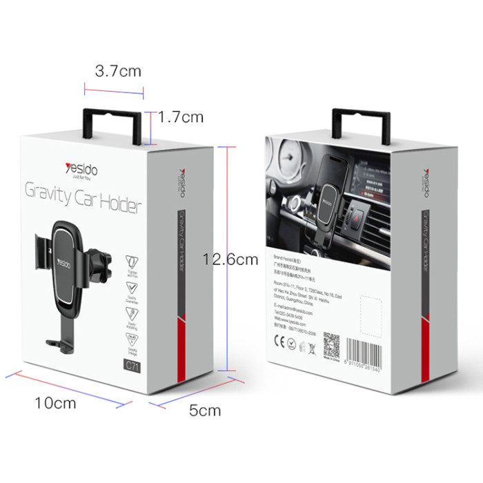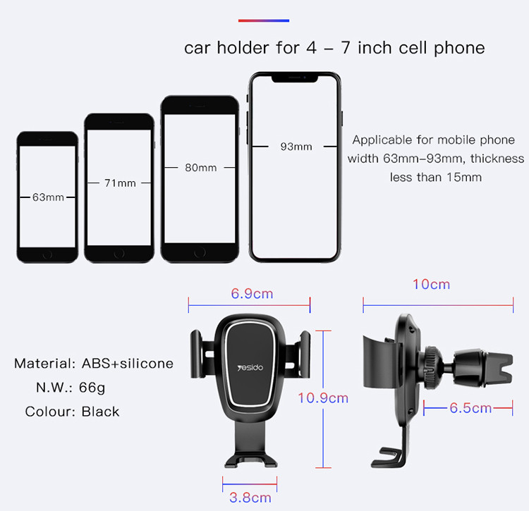 Short description: C71 Air Vent Phone HolderYesido C71 Stock Spring Clip Mobile Phone Holder 360 Rotation Universal Car Mount Holder For Sale.HPS offer 0.5J/1J/2J/3.5J/4.8J(AC/AC&DC/SOLAR).FeaturesSpring Clip Phone Holder.Using on Air Vent.Air Vent Phone Holder.C71 Air Vent Phone HolderParameterBrand:YesidoFixing method:Spring Clip Phone HolderMode:C71Apply to:Air VentMaterial:ABS + siliconeApplicable items:Mobile PhoneOutput:G.W:101GC71 Air Vent Phone HolderVideoProduct Installation Video1.Assemble the holder and the base.2.Assemble the holder on to the air vent.3. Put the mobile phone on and start using.Product CompositionAir Vent Phone Holder.C71 Air Vent Phone HolderDetailsFAQ1. what is the delivery time of theC71 Air Vent Phone Holder?Usually, the delivery time will be within 5-7 days.2. What you can do in OEM ?We can help to design the customer’s logo on the products, and help to design the product packaging according to our standard3. How long is your warranty time?from the selling date, last for 1 year.