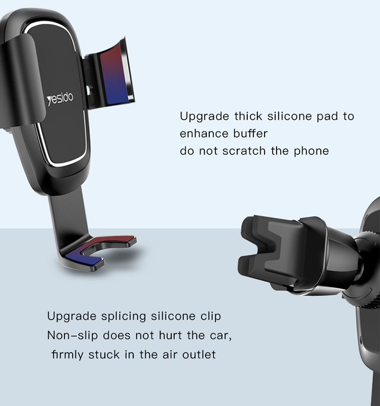 C71 Air Vent Phone HolderYesido C71 Stock Spring Clip Mobile Phone Holder 360 Rotation Universal Car Mount Holder For Sale.HPS offer 0.5J/1J/2J/3.5J/4.8J(AC/AC&DC/SOLAR).FeaturesSpring Clip Phone Holder.Using on Air Vent.Air Vent Phone Holder.C71 Air Vent Phone HolderParameterBrand:YesidoFixing method:Spring Clip Phone HolderMode:C71Apply to:Air VentMaterial:ABS + siliconeApplicable items:Mobile PhoneOutput:G.W:101GC71 Air Vent Phone HolderVideoProduct Installation Video1.Assemble the holder and the base.2.Assemble the holder on to the air vent.3. Put the mobile phone on and start using.Product CompositionAir Vent Phone Holder.C71 Air Vent Phone HolderDetailsFAQ1. what is the delivery time of theC71 Air Vent Phone Holder?Usually, the delivery time will be within 5-7 days.2. What you can do in OEM ?We can help to design the customer’s logo on the products, and help to design the product packaging according to our standard3. How long is your warranty time?from the selling date, last for 1 year.