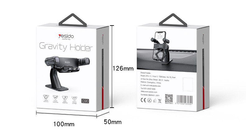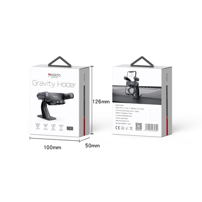 C90 Gravity Sensor Phone HolderYesido C90 Car Gravity 360 Degree Universal Dashboard Moblie Phone Holder | Gravity Sensor Phone Holder.HPS offer 0.5J/1J/2J/3.5J/4.8J(AC/AC&DC/SOLAR).FeaturesGravity Phone Holder.Design car dashboard.Gravity Sensor.Aluminium Alloy + ABS + Silicone.C90 Gravity Sensor Phone HolderParameterBrand:YesidoFixing method:Gravity Sensor Phone HolderMode:C90Apply to:DashboardMaterial:Aluminium Alloy + ABS + SiliconeApplicable items:Mobile PhoneOutput:G.W:92GC90 Gravity Sensor Phone HolderVideoProduct Installation Video1.Assemble the holder and the base.2.Assemble the holder on to the Dashboard..3. Put the mobile phone on and start using.Product CompositionGravity SensorPhone Holder.C90 Gravity Sensor Phone HolderDetailsFAQ1. what is the delivery time of theC90 Gravity Sensor Phone Holder?Usually, the delivery time will be within 5-7 days.2. What you can do in OEM ?We can help to design the customer’s logo on the products, and help to design the product packaging according to our standard3. How long is your warranty time?from the selling date, last for 1 year.