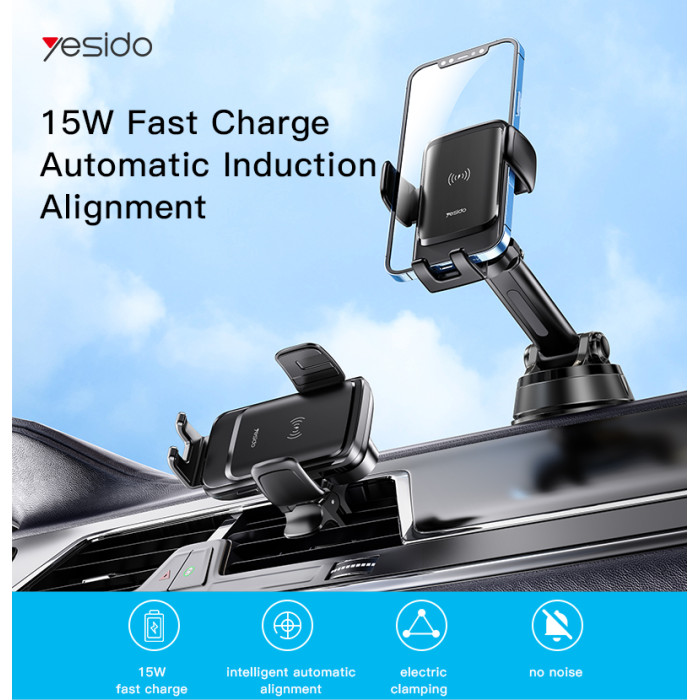 Yesido C188 Car Phone Holder | 15W Fast Charge Automatic Induction Alignment Universal Cradle Car Charger.