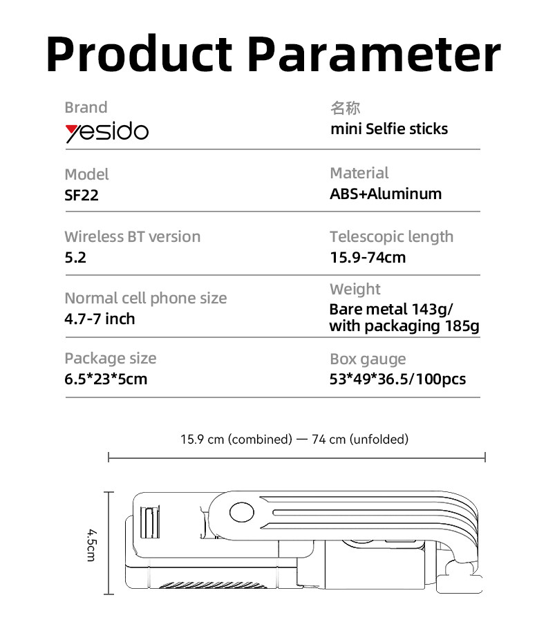 Yesido SF21 Auto Face Tracking Gimbal StabilizerSF21 Yesido Yesido Face Tracking With Camera Powerful Battery Built-in Extra Fill Light 3-Axis Gimbal Stabilizer.FeaturesPA6+GF+UV+ Steel.With triple leg stand.BT connecting BT5.0.Auto tracking gimbal function.With AI Camera and Flash Light.Apps: Gimbal Pro.Built-in Battery: 2550mAh.Working Time Around 5 hours.Yesido SF21 Auto Face Tracking Gimbal StabilizerParameterBrand:YesidoFixing method:SF21 Auto Face Tracking Gimbal StabilizerMode:SF21Apply to:Mobile PhoneMaterial:ABS + Aluminum AlloyBattery:2550mAhPower Output:G.W:643GYesido SF21 Auto Face Tracking Gimbal StabilizerParameterProduct CompositionYesido SF21 Auto Face Tracking Gimbal Stabilizer1. Turn on the SF18.2. The phone Bluetooth connects to the product.3. And then it’s ready to use.Yesido SF21 Auto Face Tracking Gimbal StabilizerDetailsFAQ1. what is the delivery time of theYesido SF21 Auto Face Tracking Gimbal StabilizerUsually, the delivery time will be within 5-7 days.2. What you can do in OEM ?We can help to design the customer’s logo on the products, and help to design the product packaging according to our standard3. How long is your warranty time?from the selling date, last for 1 year.