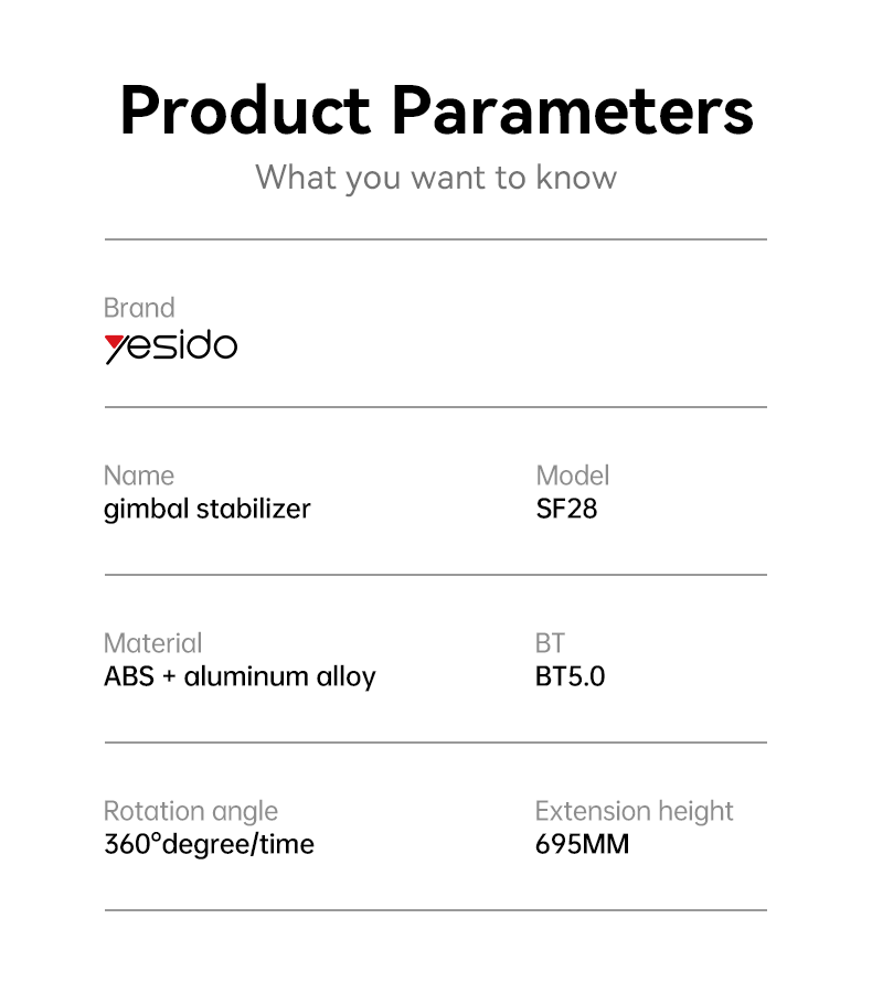 1. what is the delivery time of theYesido SF28 Handheld Gimbal (Tripod) Stabilizer? → Usually, the delivery time will be within 5-7 days.